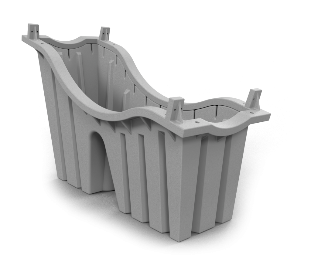 É uma solução inovadora que gera ganhos em escala para usinas de solo ou laje. Ela é feita de polietileno, pesa 15 kg e possui alta resistência. Os lastros são preenchidos com terra, areia, brita ou similares para sustentar a estrutura, em que se fixam os perfis e os módulos.